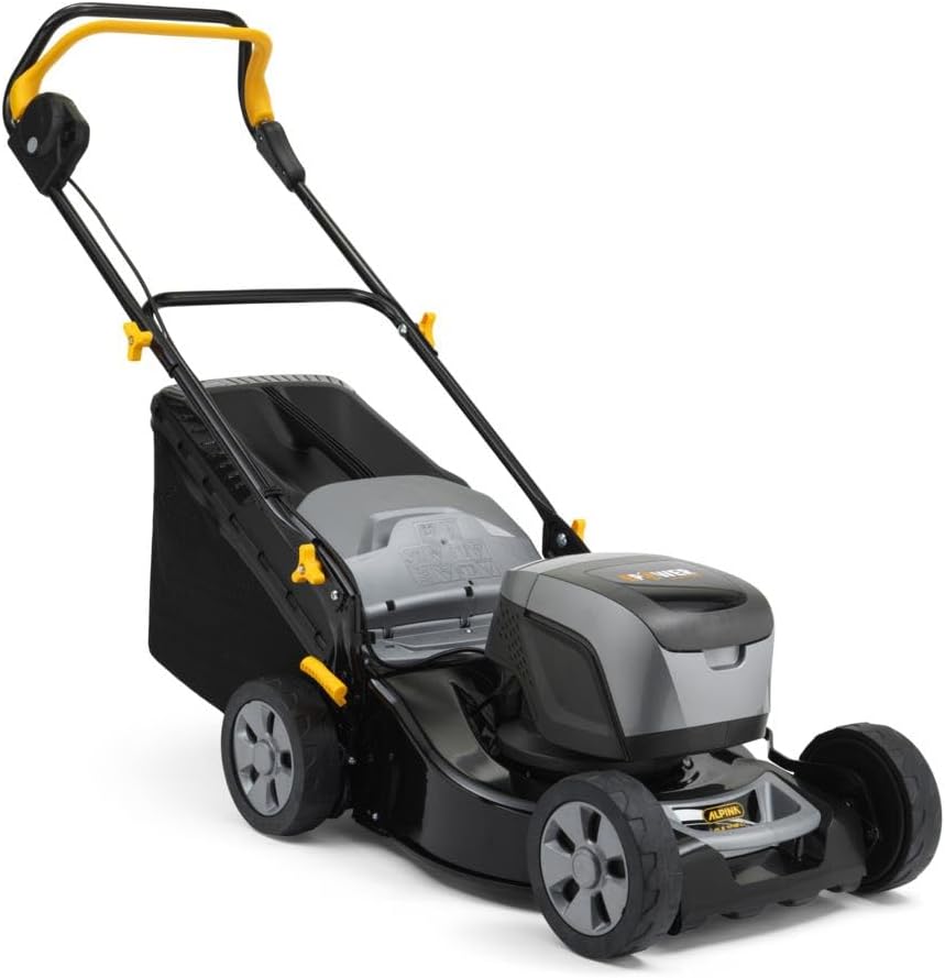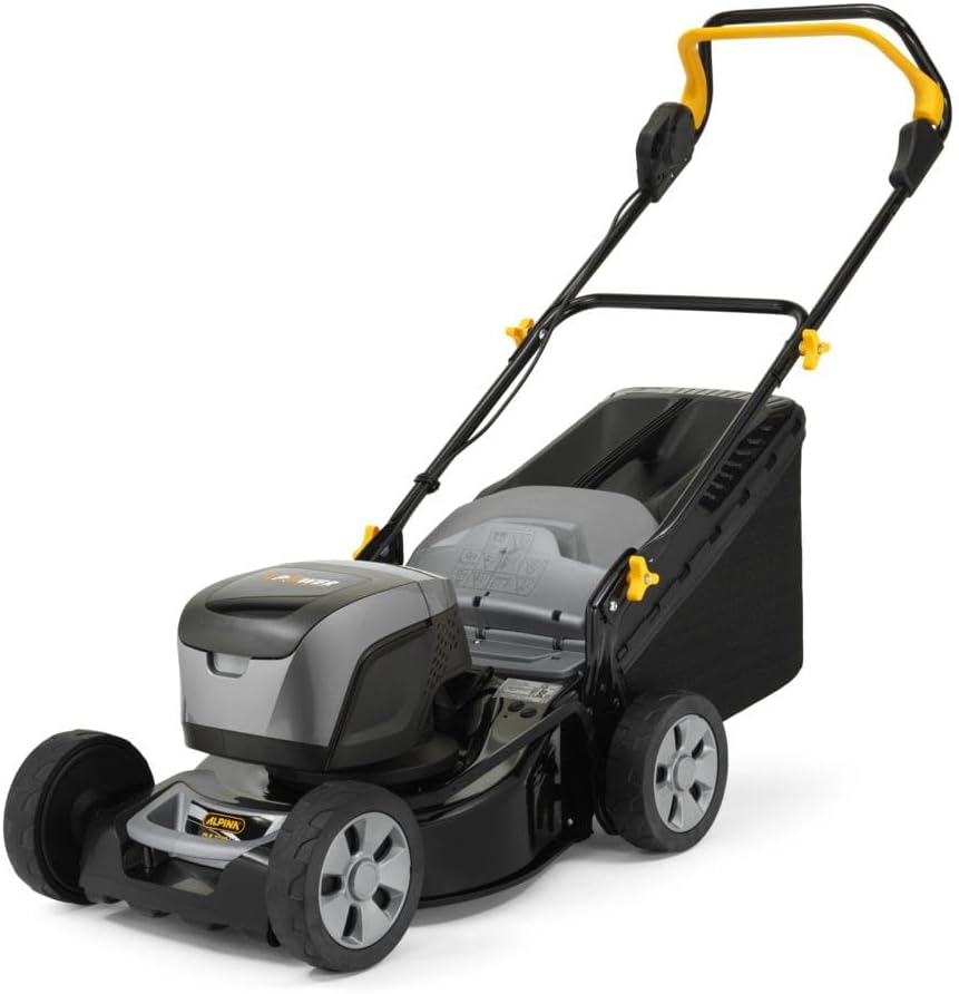 Sada akumulátorové sekačky na trávu Alpina AL5 4148 Li – akumulátorová sekačka na trávu, 48 V, šířka sečení 41 cm, sběrný koš 60 l, ocelová sekačka