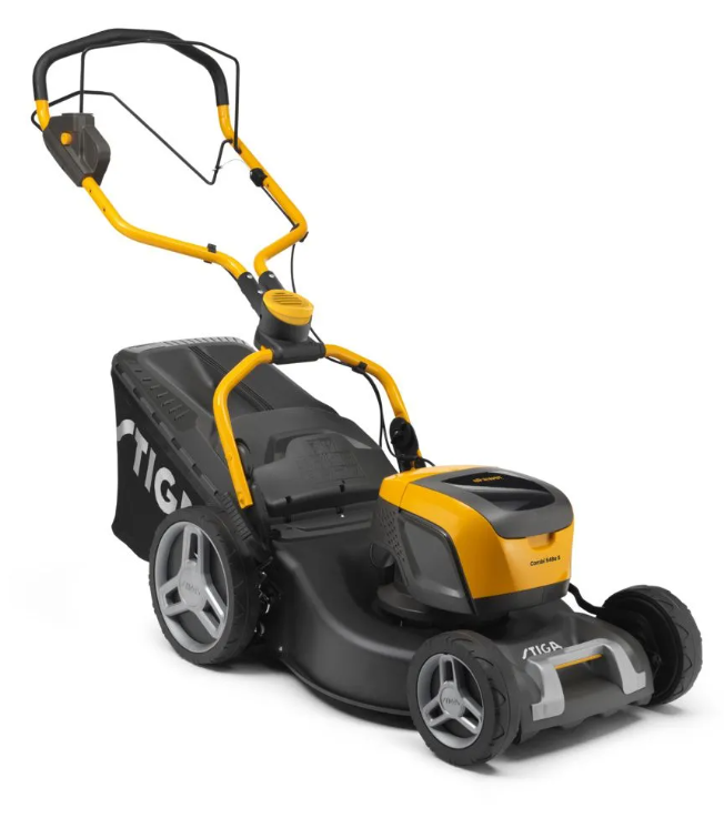 Dvě synchronizované 48 V baterie (2× 4,0 Ah) v balení – až ~550 m² na nabití